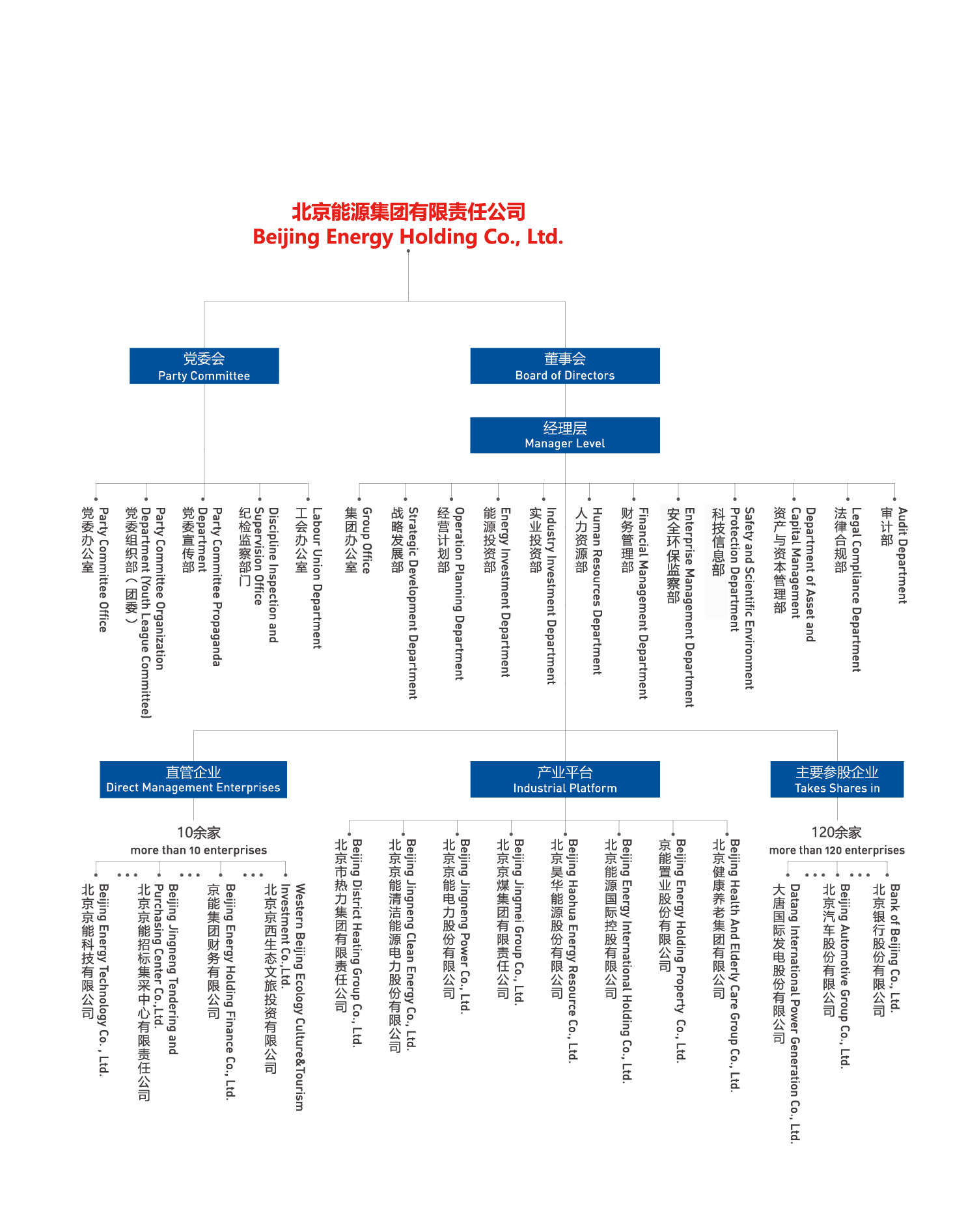 北京能源集團有限責任公司(以下簡稱“京能集團”或“集團”)是北京市人民政府出資設立的國有獨資公司,肩負著保障首都北京能源安全可靠供應的重任。集團成立于2004年,由原北京國際電力開發(fā)投資公司和原北京市綜合投資公司合并而成,2011年、2014年先后又與北京市熱力集團有限責任公司、北京京煤集團有限責任公司實施合并重組,實現(xiàn)了產(chǎn)業(yè)鏈條融合互補。經(jīng)過多年的資源整合,集團由單一能源產(chǎn)業(yè)發(fā)展為熱力、電力、煤炭、健康文旅等多業(yè)態(tài)產(chǎn)業(yè)格局。2024年底,集團資產(chǎn)規(guī)模達4934億元,年營業(yè)收入975億元,全資及控股企業(yè)860余家,參股企業(yè)120余家,擁有員工3.4萬余人,投資區(qū)域遍布全國33個省市區(qū)以及海外,控股京能清潔能源、京能電力、昊華能源、京能置業(yè)、北京能源國際、京能熱力六家上市公司,盈利水平長期穩(wěn)居北京市屬企業(yè)前列。2024年在中國企業(yè)500強排名第247位,中國服務企業(yè)500強排名第87位。